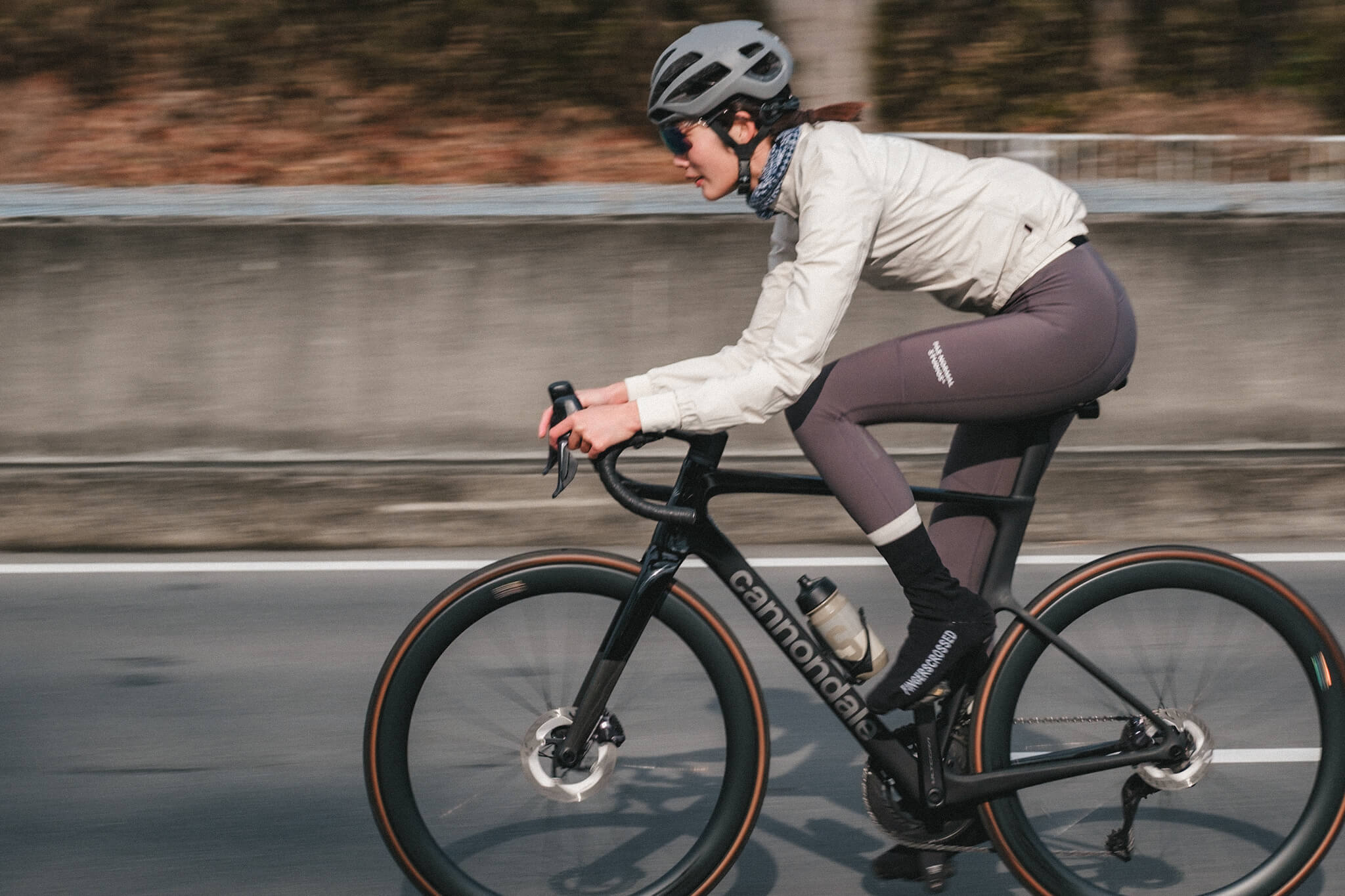 昔はもっと派手で、レース機材としての主張が強いイメージがあったが、ロゴを変えたあとのCannondaleは、彼女のライフスタイルや、普段着ているウェアのトーンにも馴染む大人のプロダクトになったと感じている。