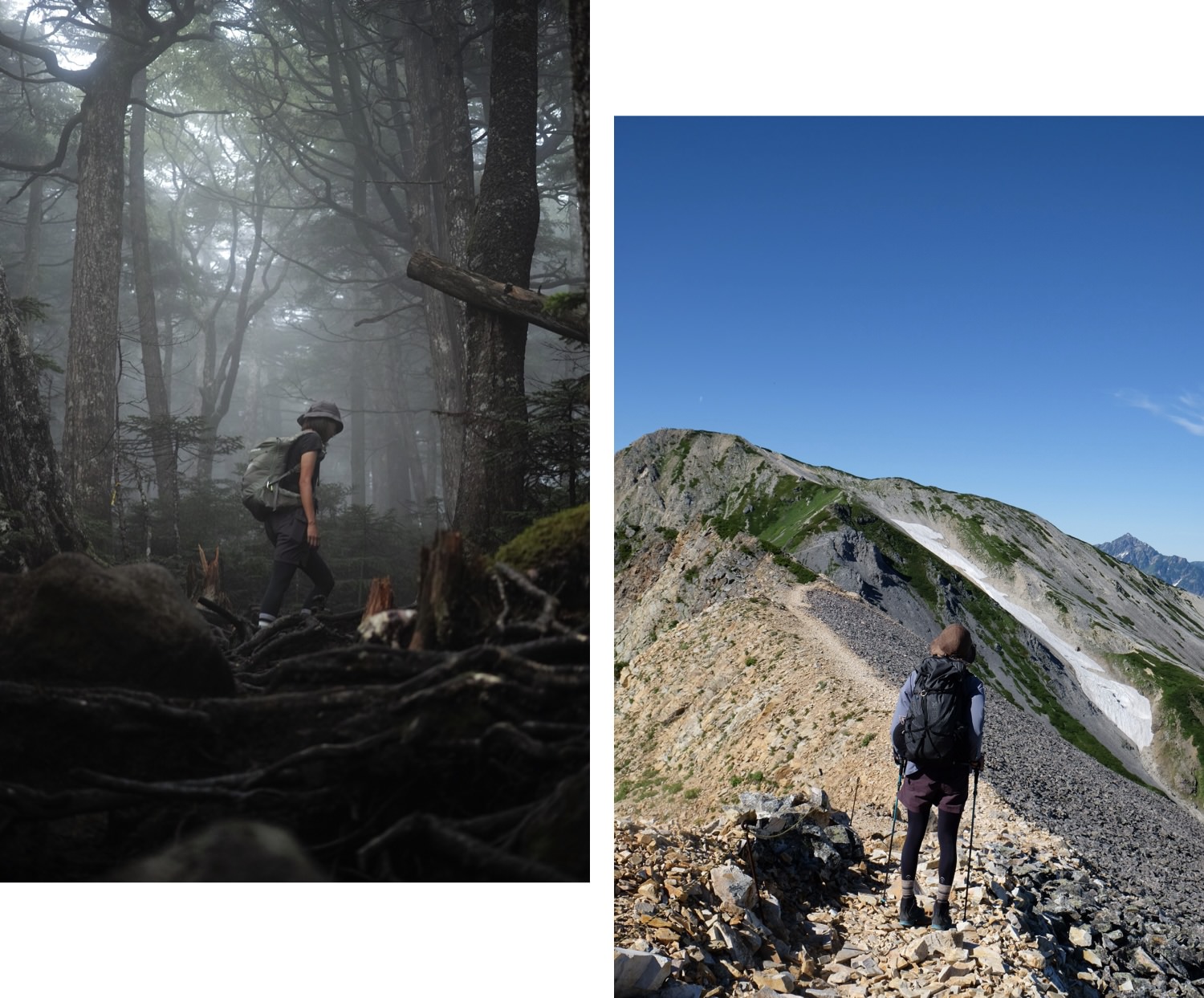 逆に週末になると、登山、スキー、ロードバイク、グラベルバイクのいずれかで、より非日常な体験を求めている。冬なら雪山でバックカントリーを楽しむし、それ以外の季節は登山やロードサイクリング、グラベルライドを選択する。