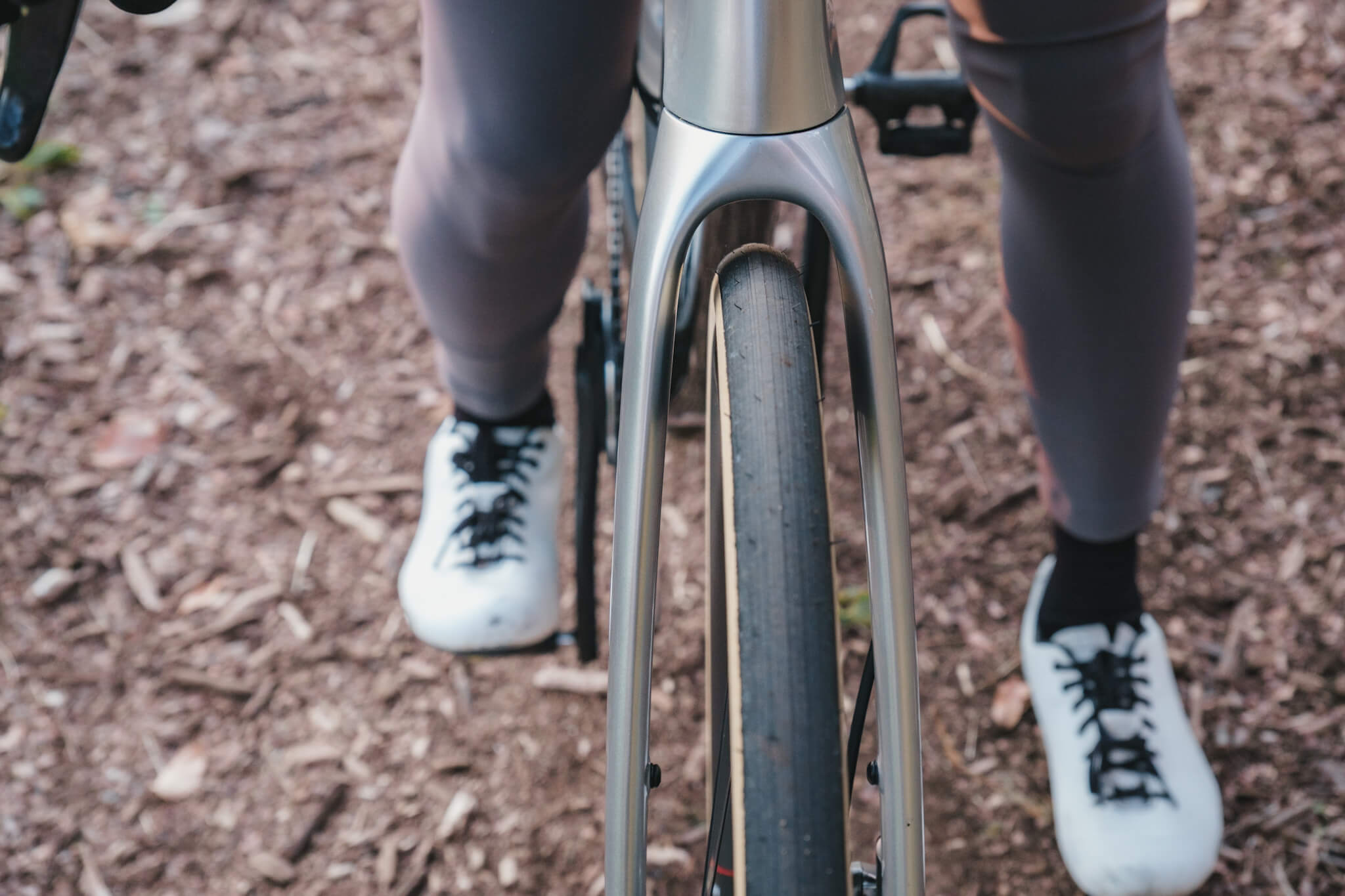 シートチューブは、上部はEVOに近いが、下部はSuperXと同じ先細りの湾曲した形状。オールロード/グラベルバイク寄りの雰囲気を出している