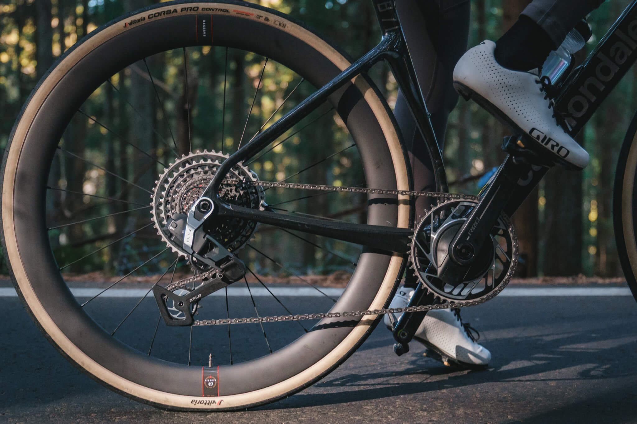 SynapseにはSRAM Red AXS XPLRの1xドライブトレインが完成車に採用されている。