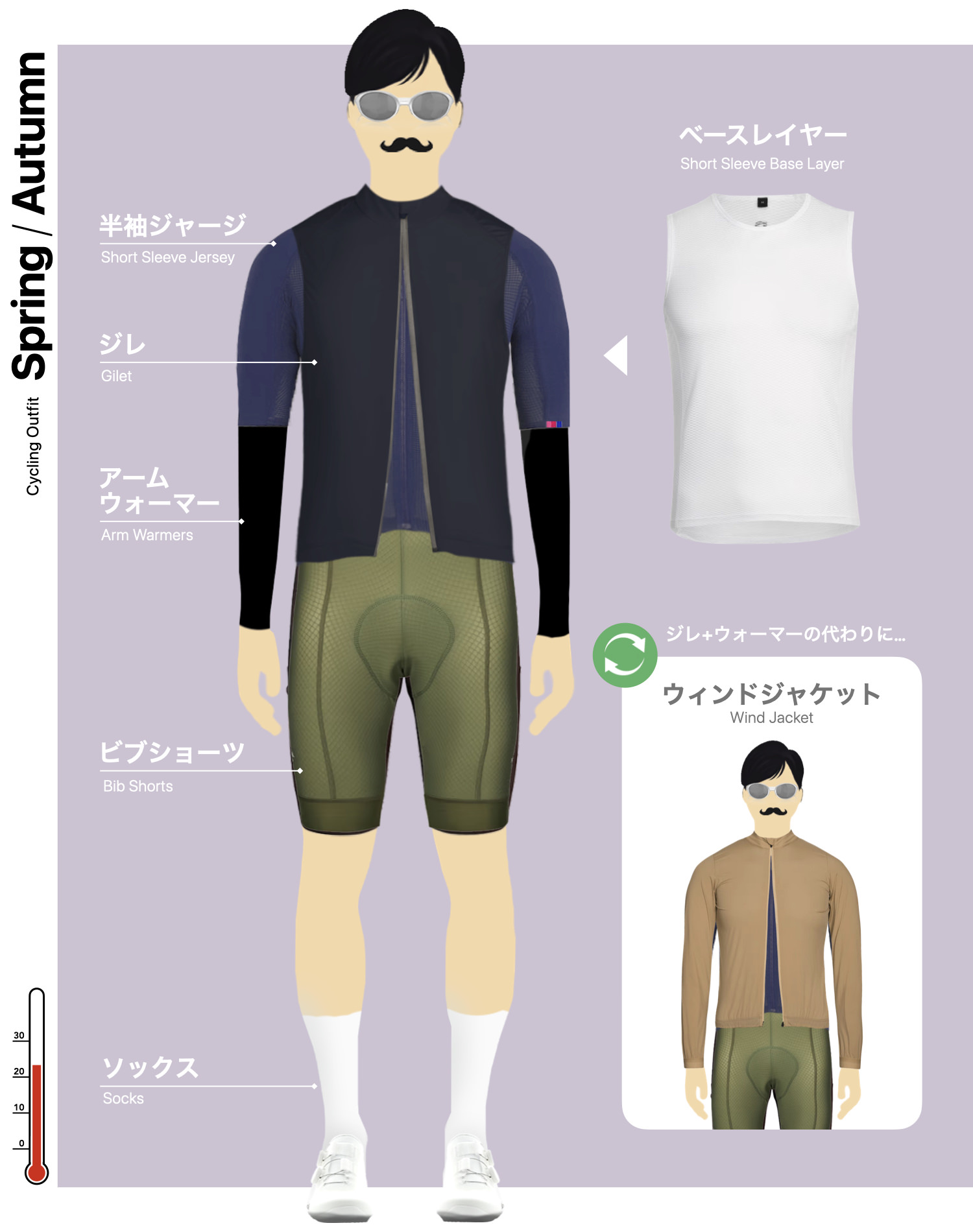 ただ、季節の変わり目に困るのが、どのウェアを組み合わせて着るのかわかりづらいということ。しかもサイクルウェアは年々進化しており、その分アイテムのバリエーションも増えている。