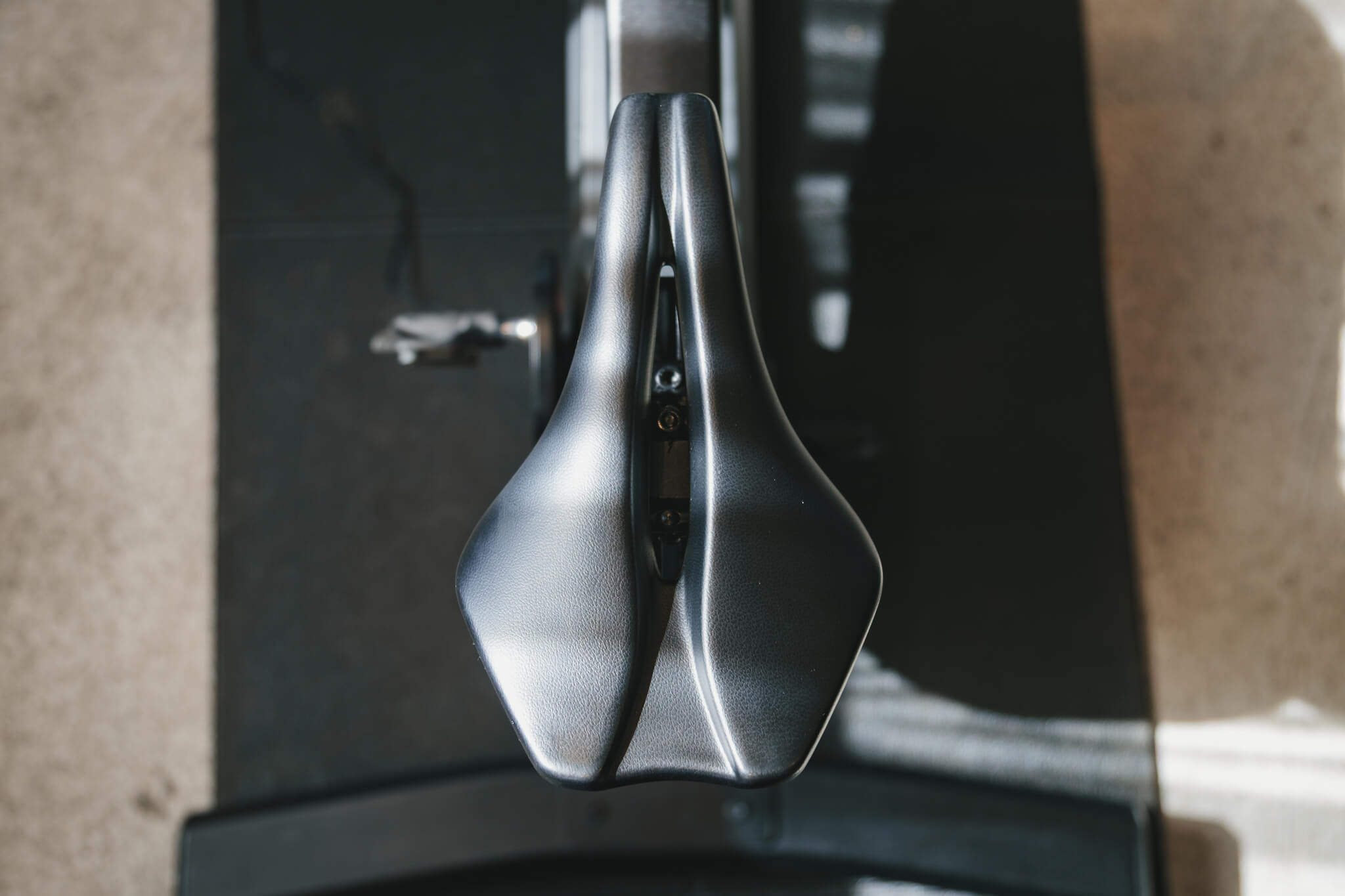 付属のサドルはショートノーズ。合わなければ好みのサドルに変更してもいい