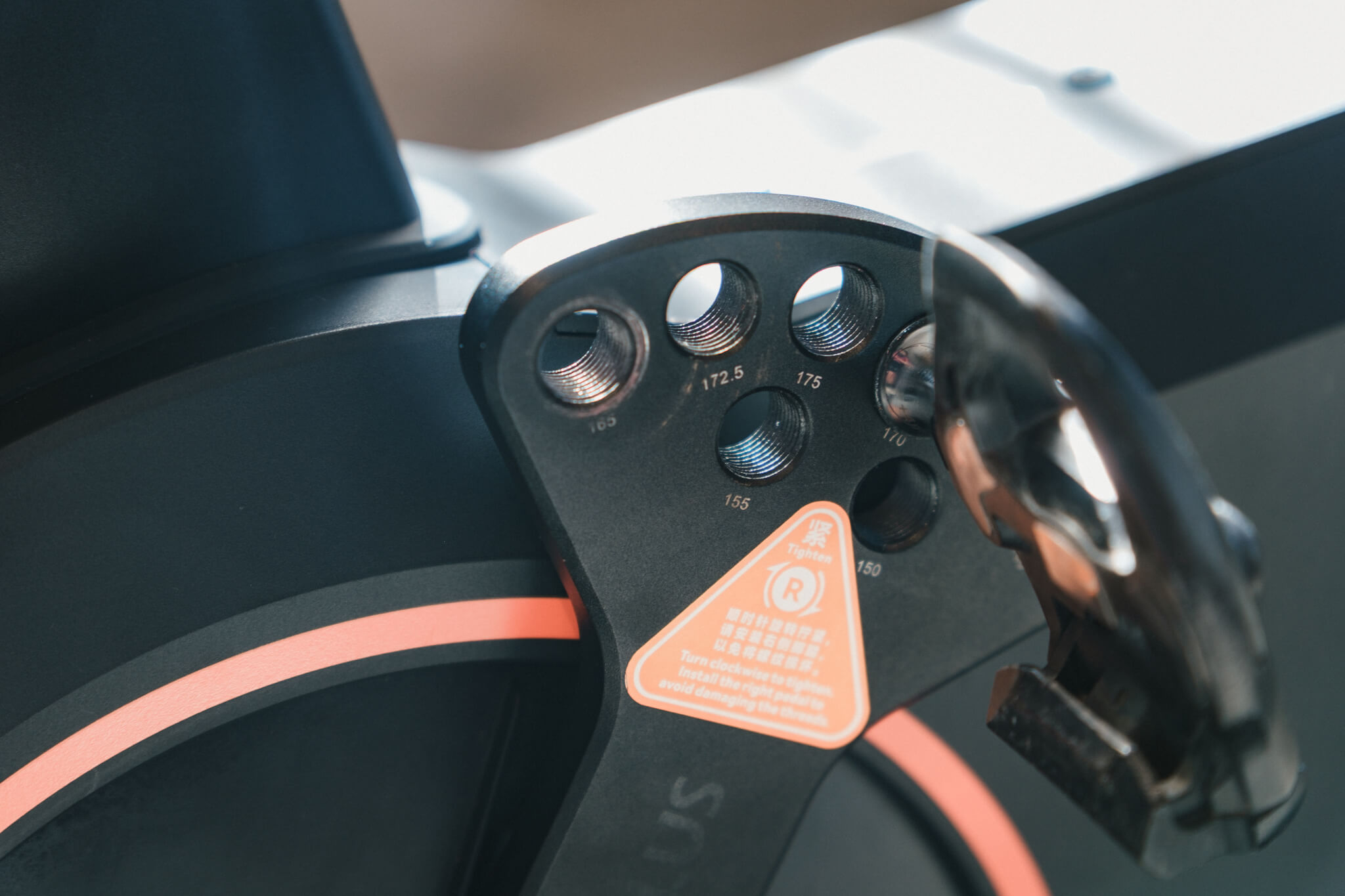 クランク長は150〜175mmの範囲で変えられるが、150〜160mmに設定しようとすると、ペダル軸の裏側が塞がる構造になっている。そのため、アーレンキーで締め付けるタイプのペダルが使用できず、ペダルレンチを使用するタイプを選ぶ必要がある。