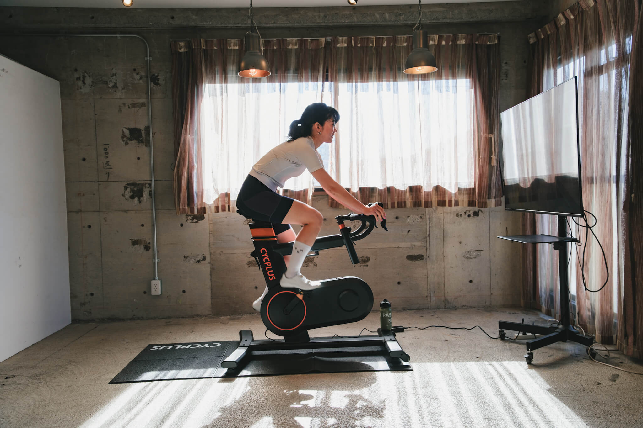 スマートバイクの中で最も軽い28kgに抑えられていて、さくっとリビングの隅からトレーニングスペースへ移動させることができる。