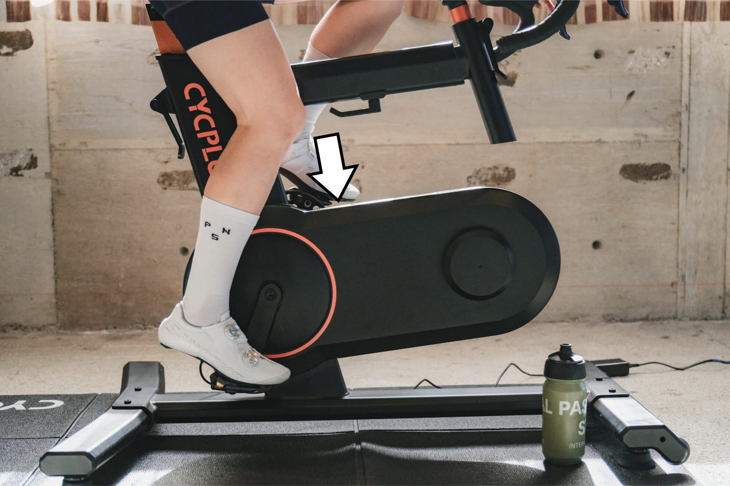 ボトルケージは設置できるが、ほぼ水平に取り付けることになるため、キャップを閉じていないと中身が出てしまう。トレーニング中にいちいちキャップを締めるのは面倒なので、乗車中の水分補給のためには近くにテーブルがあった方が良い。