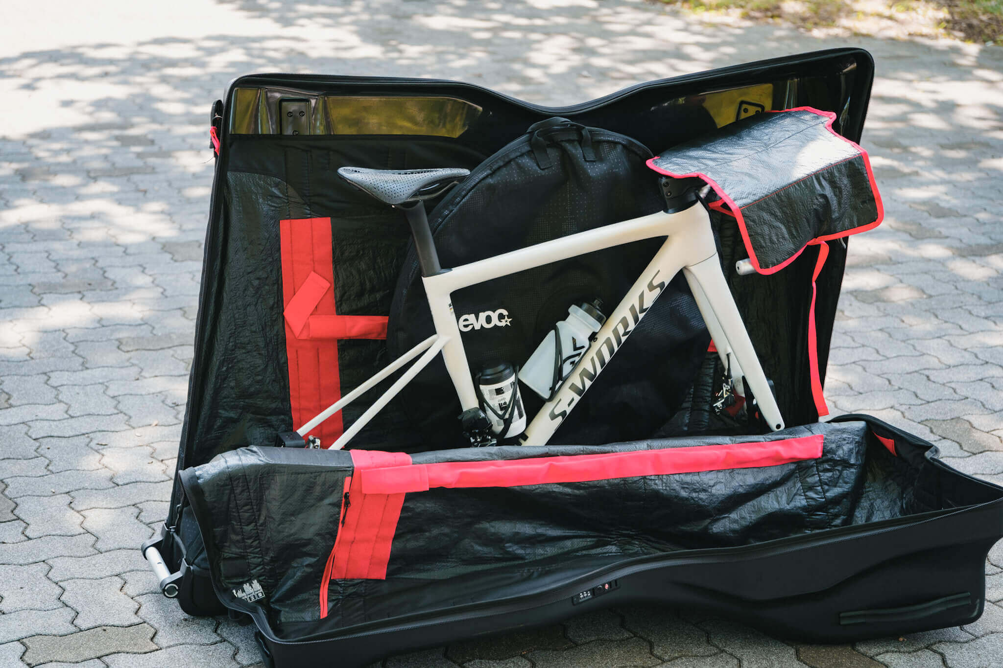 国際線の飛行機輪行といえば、長らく『Scicon』が定番だったが、近年は『evoc』の存在感の方が大きくなっている。
