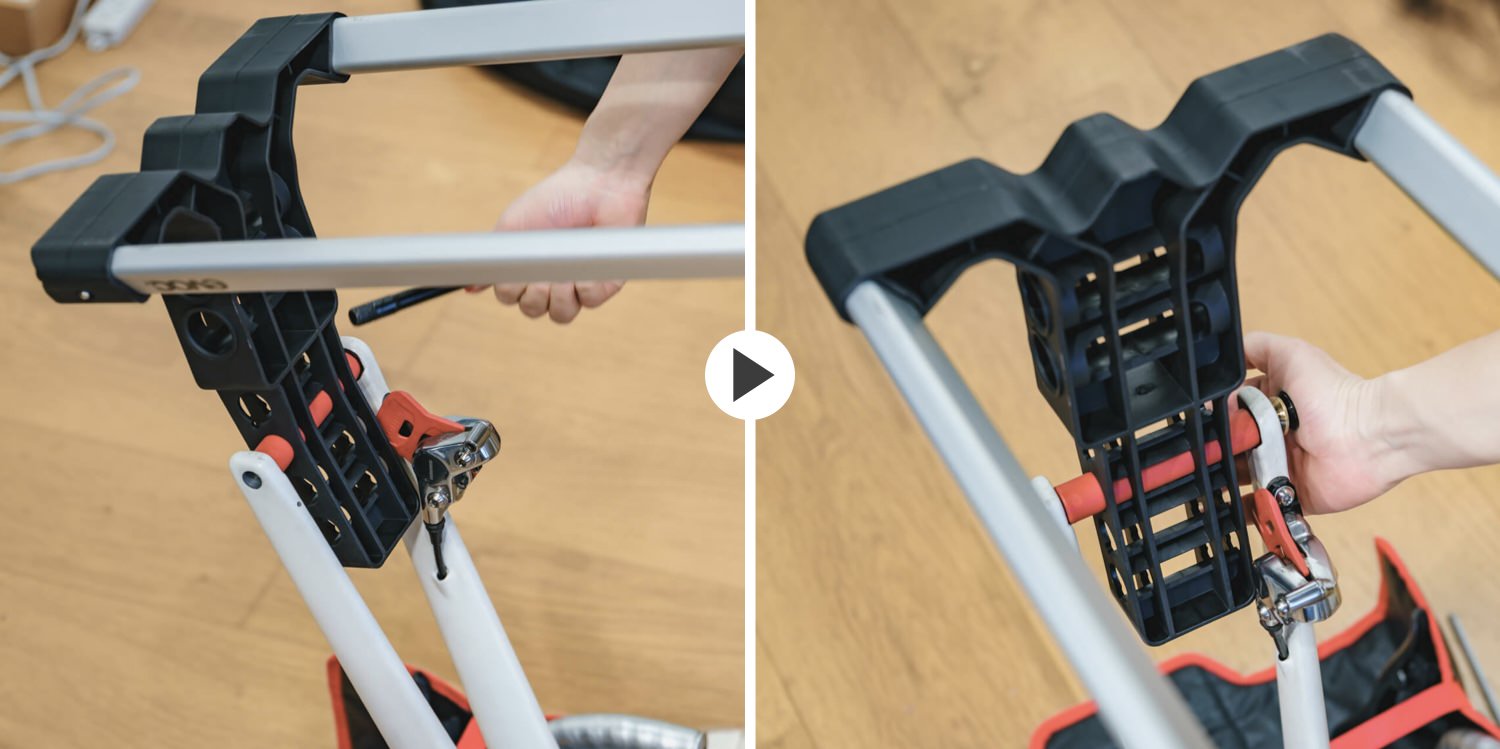 テンションバーを下まで差し込む。最新モデルはバーの色と差込口の色が同じになっているので、どこに挿せば良いかすぐにわかるようになった