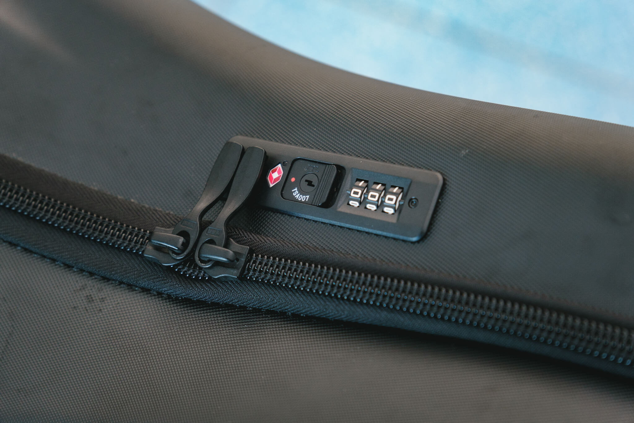 ジッパーを締めると、3桁の暗証番号でロックをかけられる