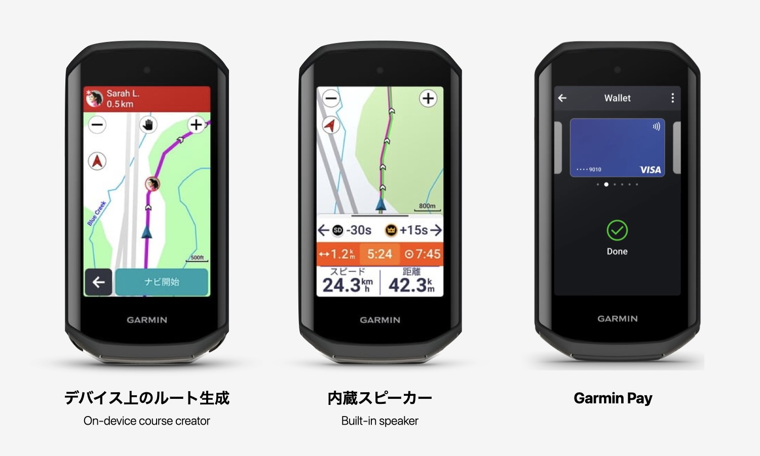 ・Garmin Pay搭載:Edge本体でタッチ決済可能