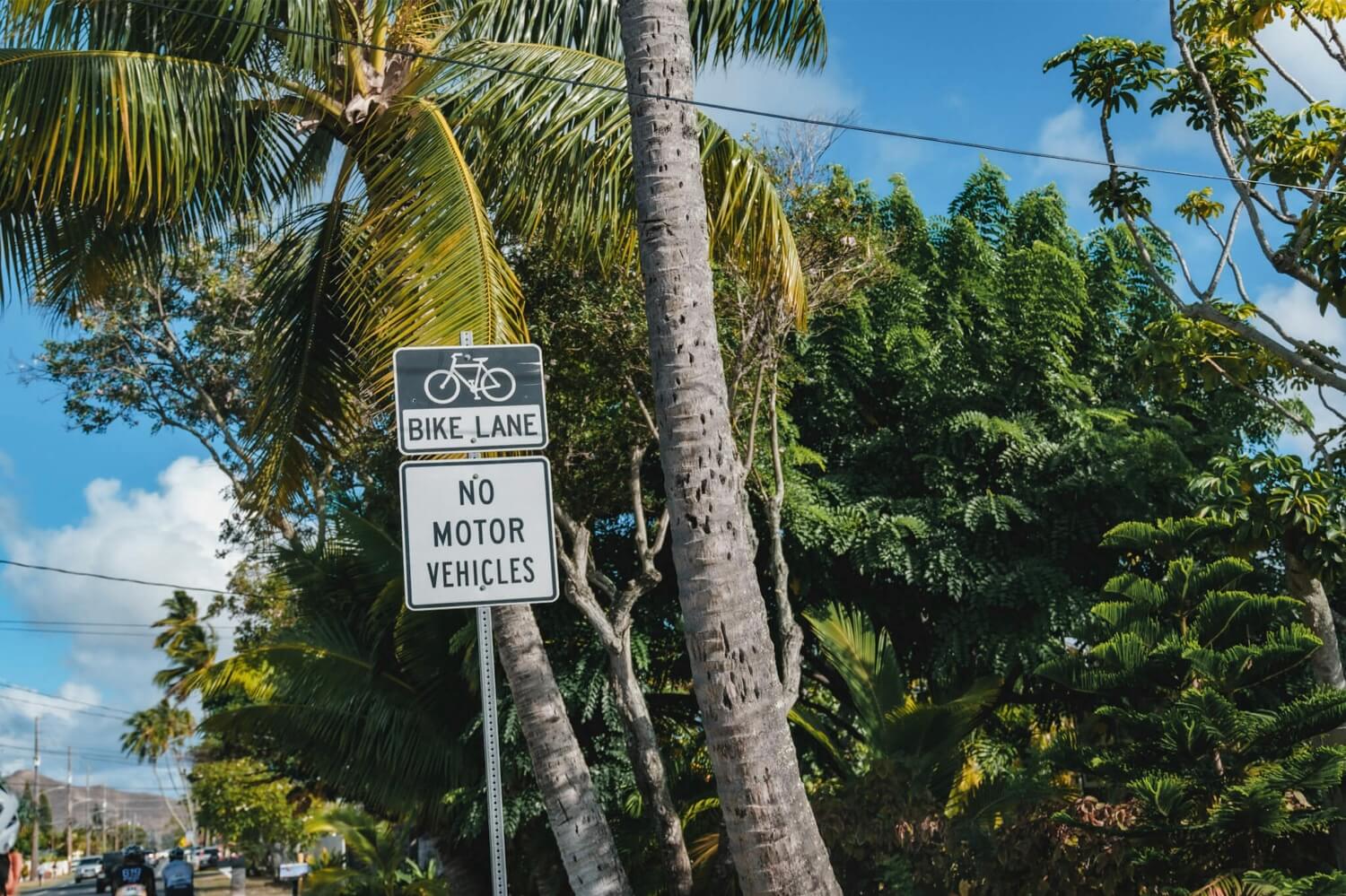 コース後半の目玉がカメハメハ・ハイウェイ。海のすぐそばを自転車で走ることができる。海の色がものすごく印象的で、思わずため息が出る。今更だが「本当にハワイに来たんだ」と感じるほど心躍る色彩。