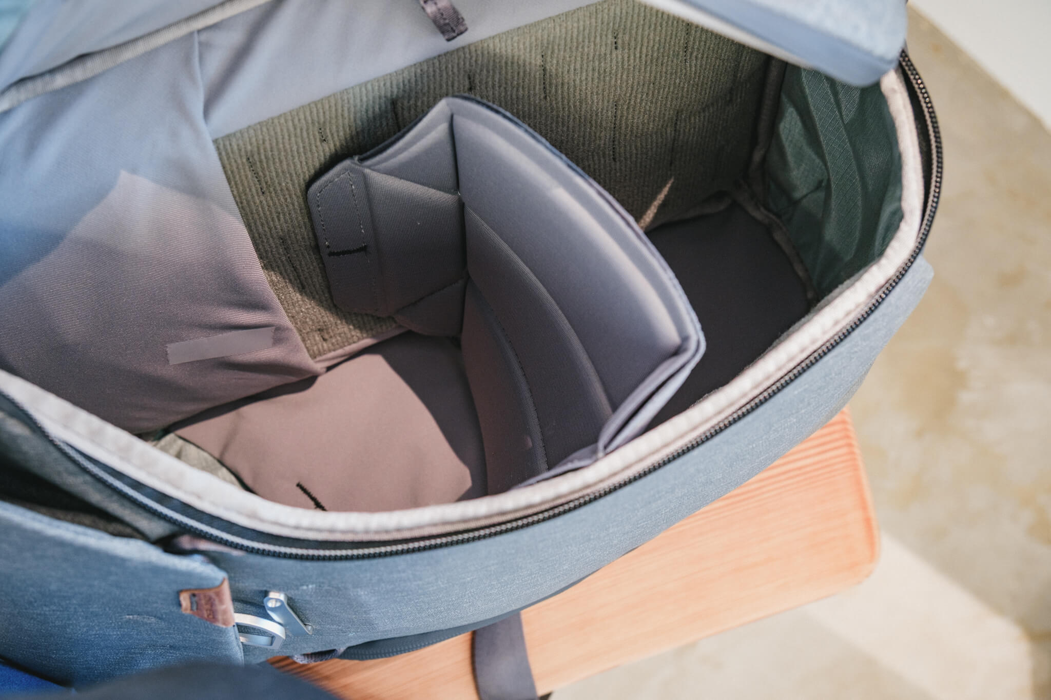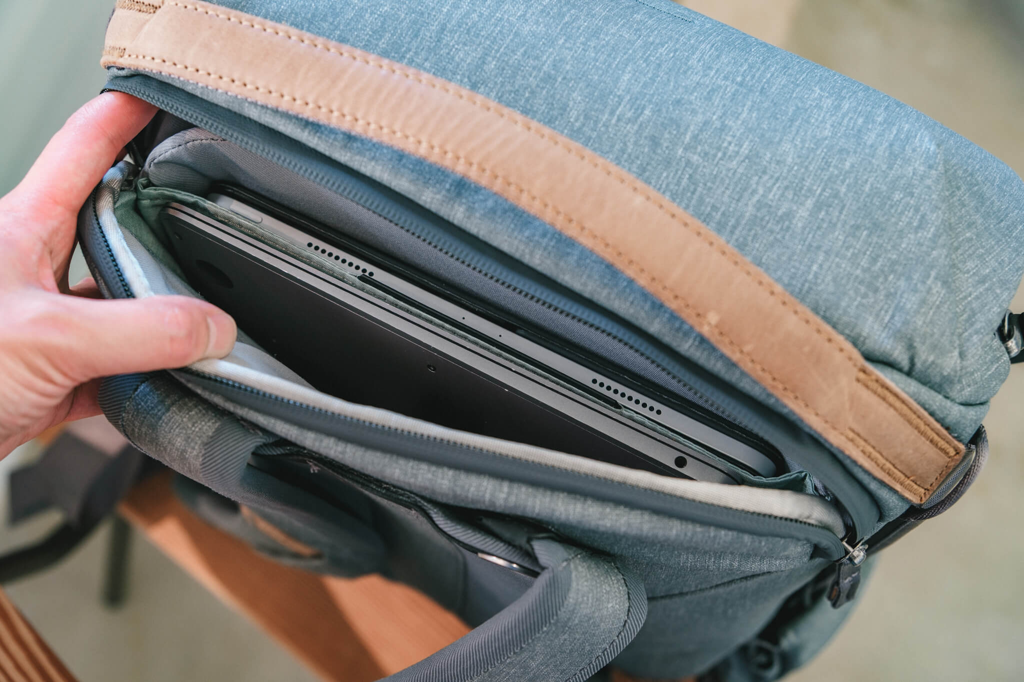 PCコンパートメントが優秀:普段、仕事用のPCと写真現像用のタブレットを両方持ち運ぶことが多いが、PCコンパートメントにはPC+タブレット+小物の3つ仕切りがあるため、すべて綺麗に区分けできる。自分の使い勝手に完璧に合っている…!